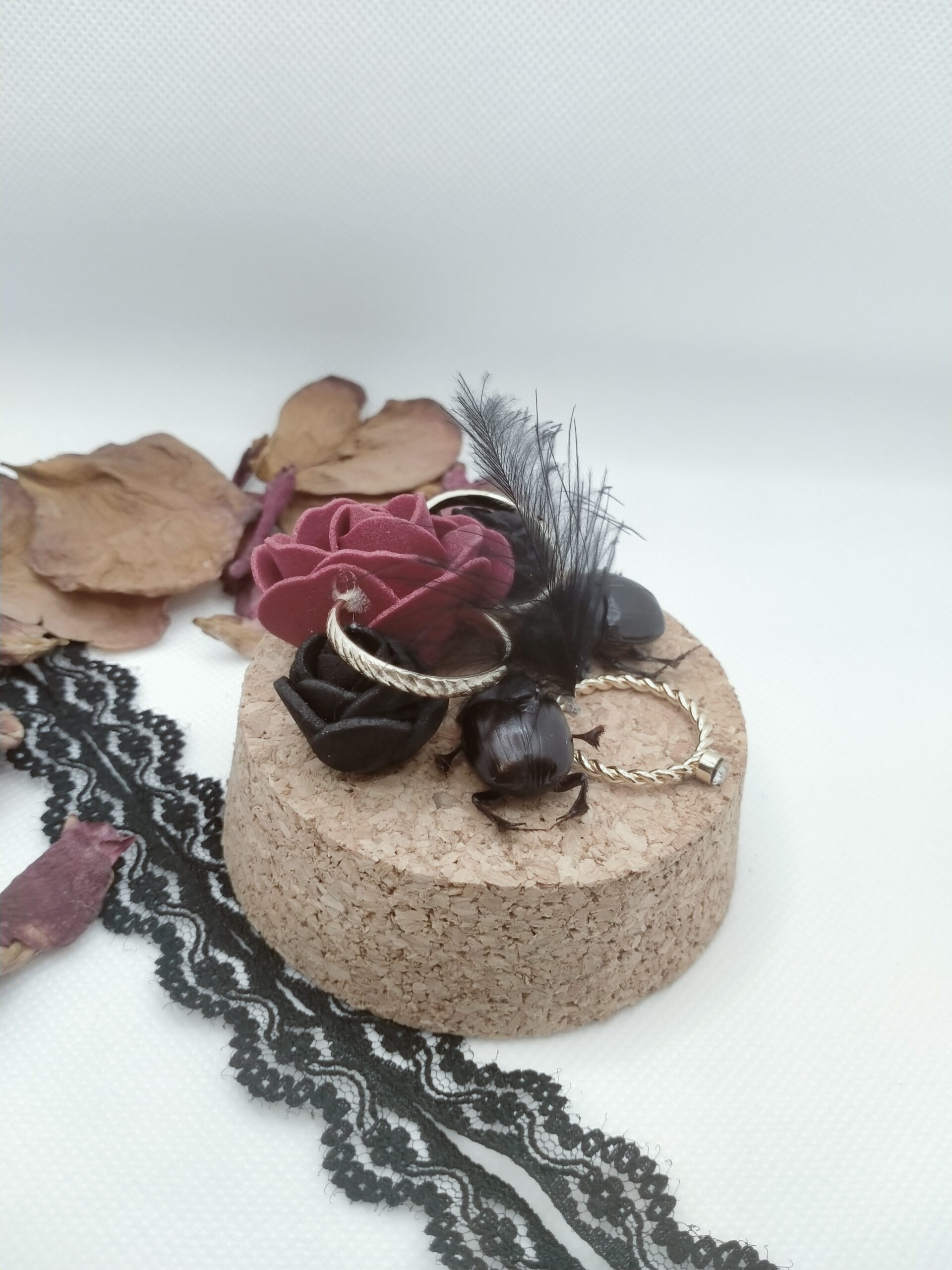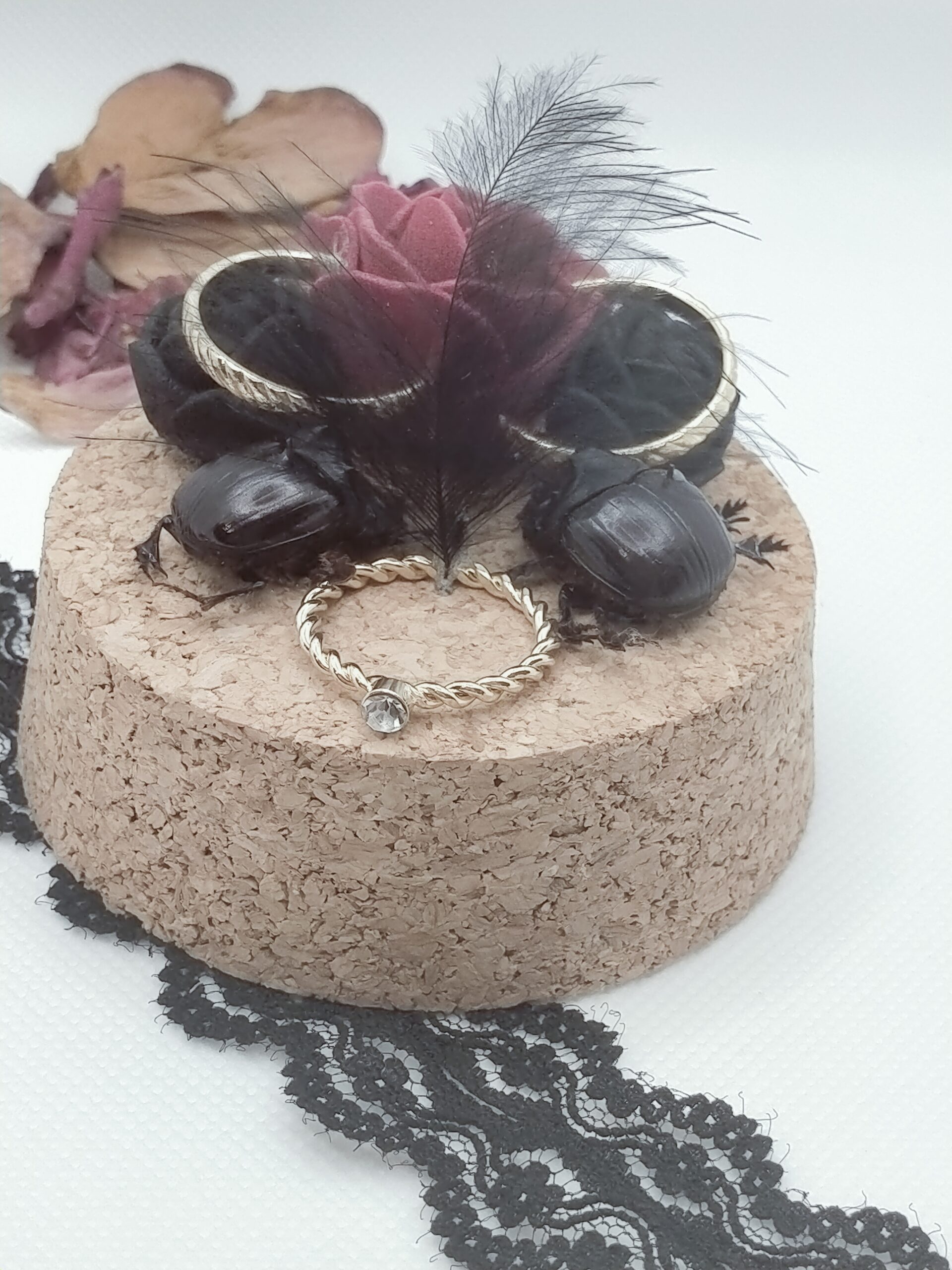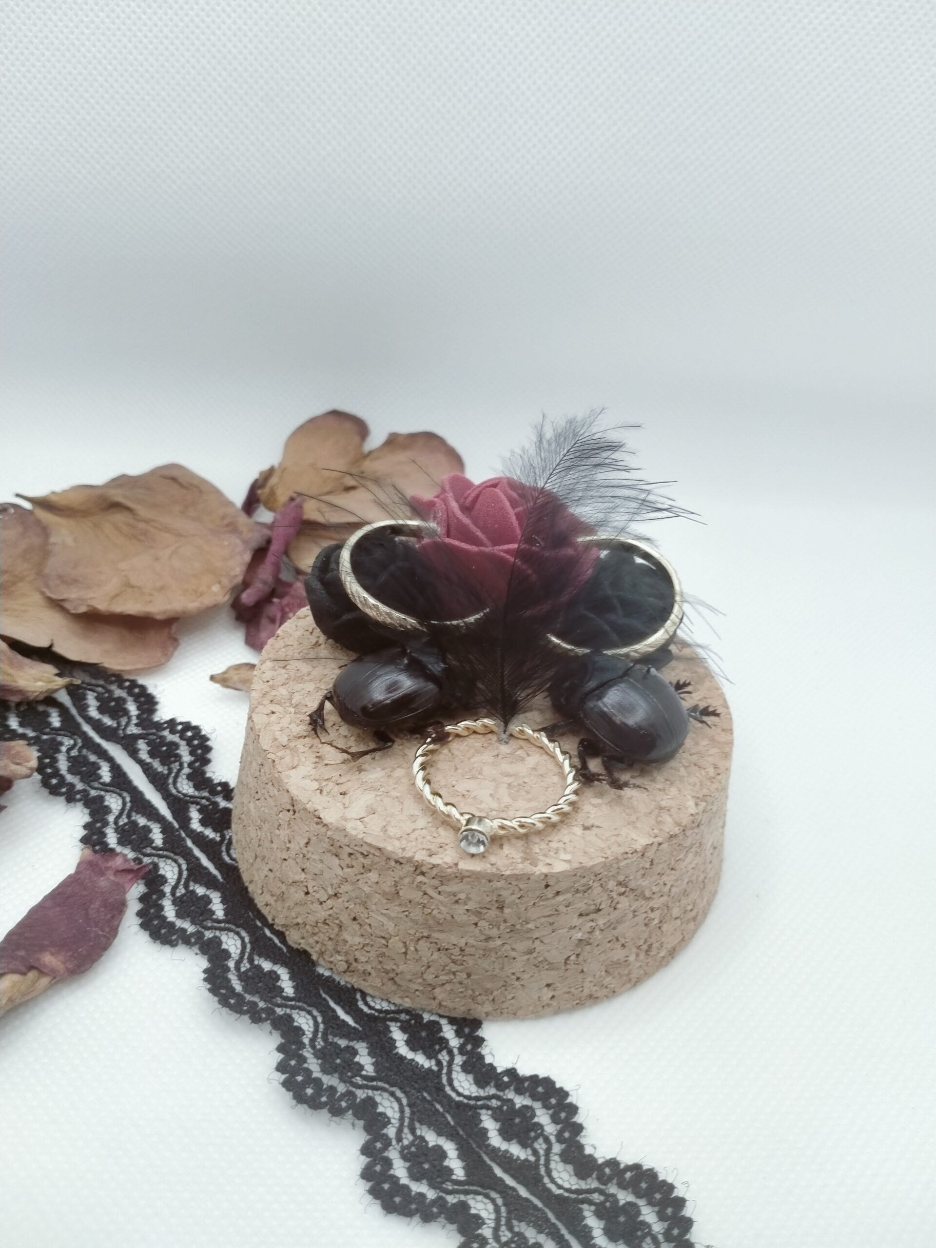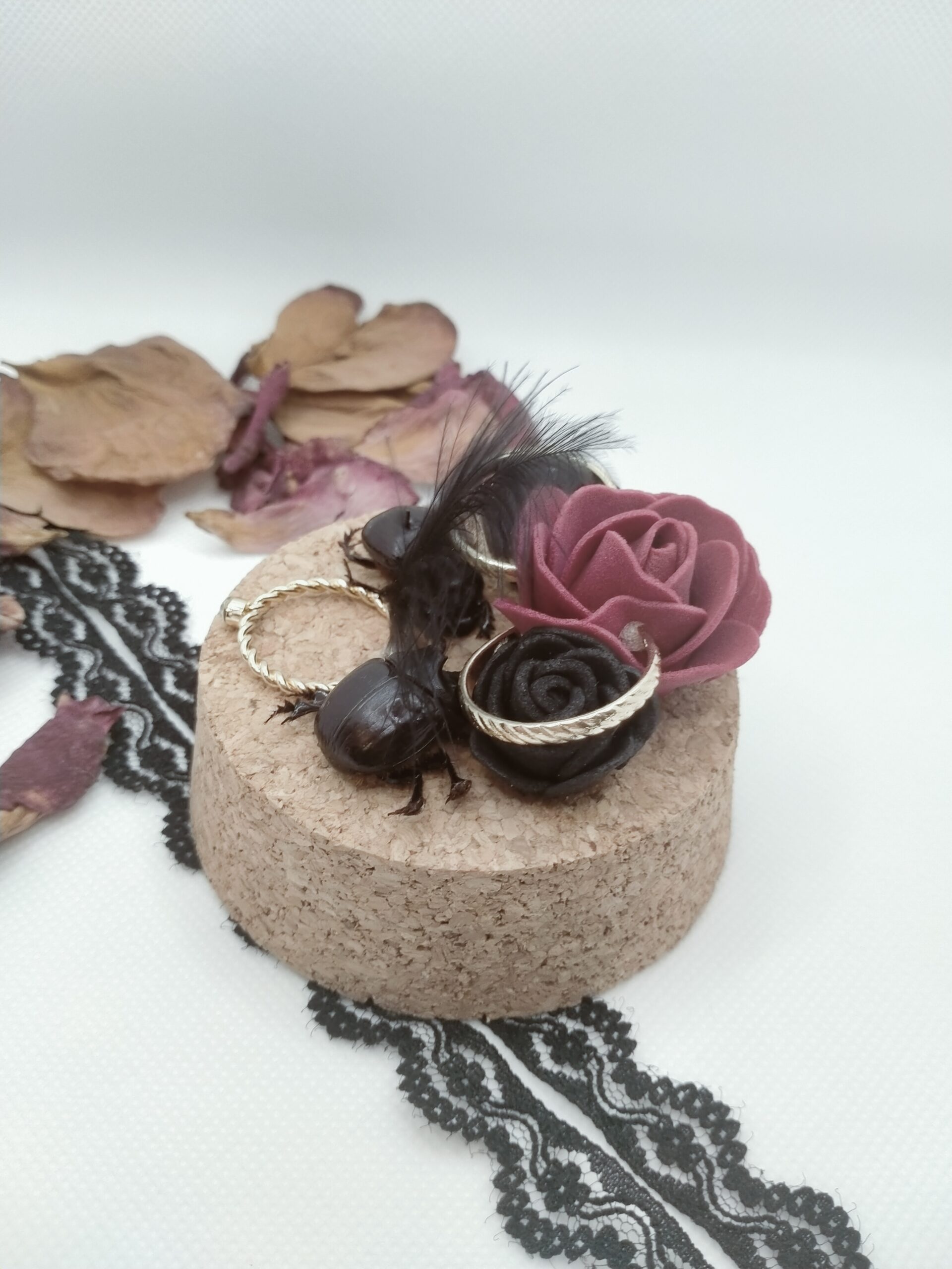 Fiole entomologique de deux Dichotomius et leur parure non faite artisanalement.